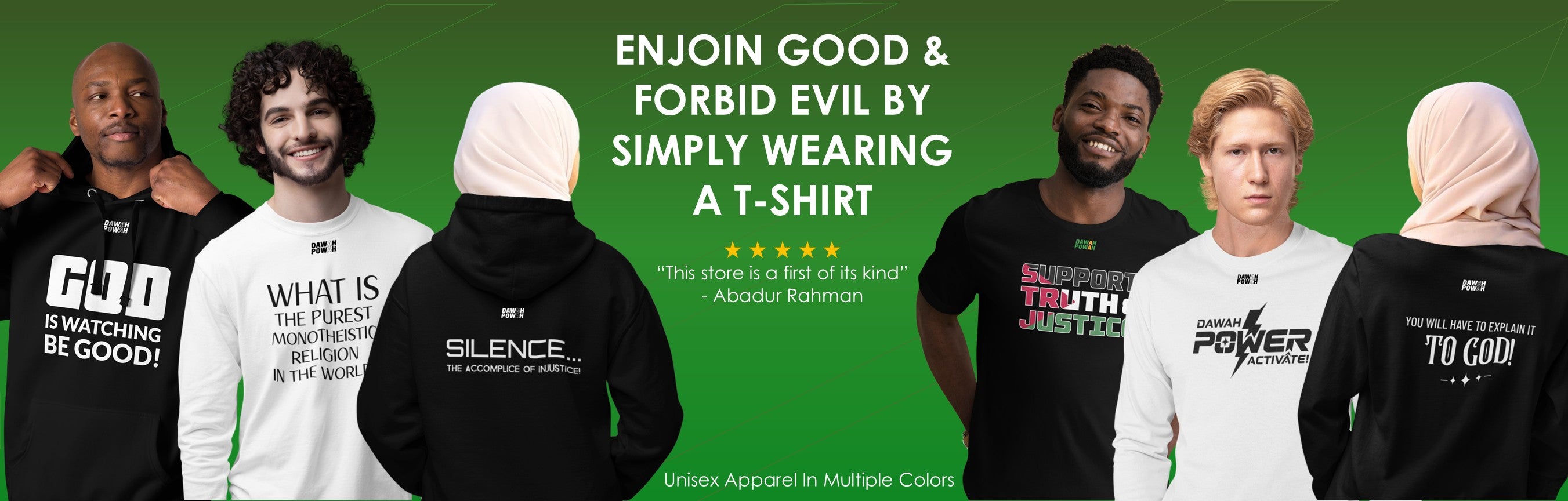 OUR MISSION is to provide the opportunity for us all to fulfill our obligation with Allah (GOD) to enjoin good and forbid evil by simply wearing a t-shirt, Insha Allah. "Let Your Dawah Powah 'ACTIVATE'!"
