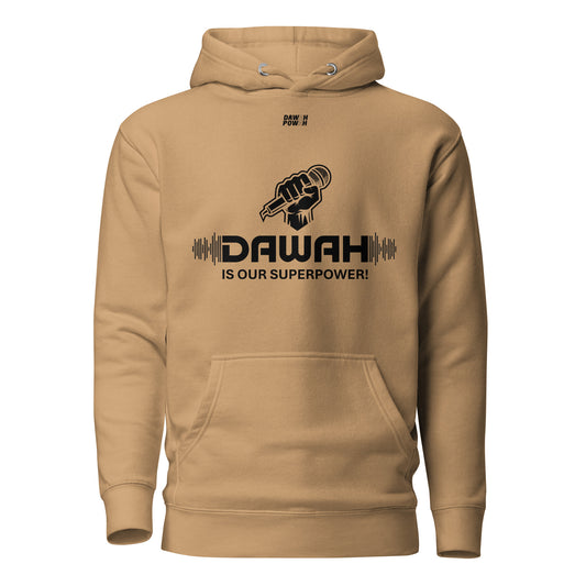 DAWAH IS OUR SUPERPOWER - MIC IN HAND - BLACK FONT Hoodies