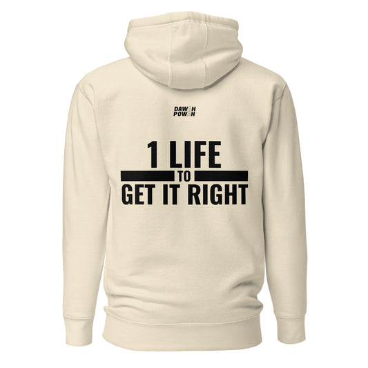 1 LIFE TO GET IT RIGHT - BLACK FONT - BACK of Unisex Hoodies