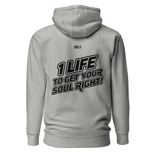 1 LIFE TO GET YOUR SOUL RIGHT - BLACK FONT - BACK of Hoodie