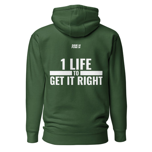 1 LIFE TO GET IT RIGHT - WHITE FONT - BACK of Hoodies