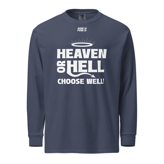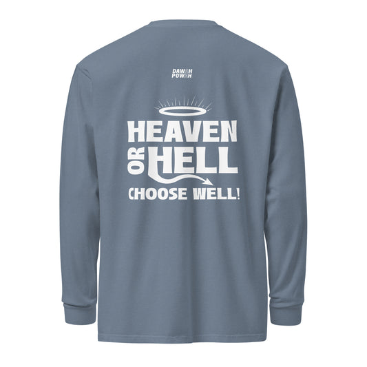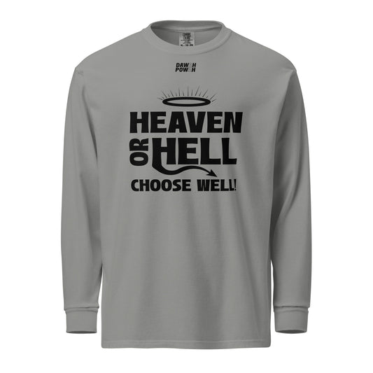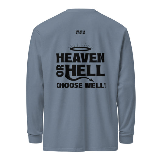HEAVEN OR HELL? - HALO & TAIL - BLACK FONT - BACK of long-sleeve shirts