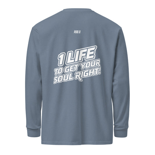 1 LIFE TO GET YOUR SOUL RIGHT - WHITE FONT - BACK of long-sleeve shirts