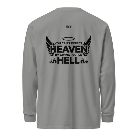 YOU CAN'T EXPECT HEAVEN - WINGS & FIRE - BLACK FONT - BACK of long-sleeve shirts