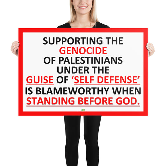SUPPORTING GENOCIDE AS 'SELF DEFENSE' IS BLAMEWORTHY WITH GOD 24X36 Photo paper poster