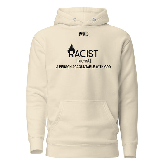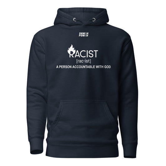 RACIST - A PERSON ACCOUNTABLE WITH GOD - WHITE FONT Hoodies