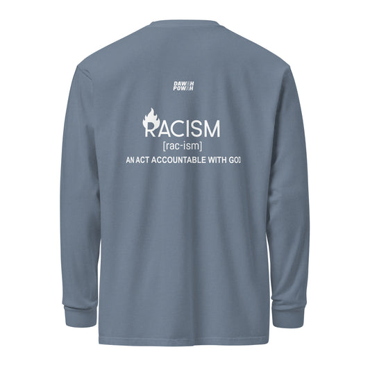 RACISM - AN ACT ACCOUNTABLE WITH GOD - WHITE FONT - BACK of Long-sleeve shirts