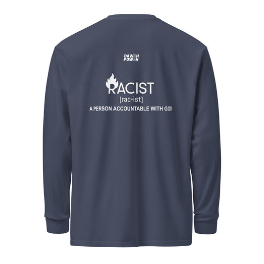 RACIST - A PERSON ACCOUNTABLE WITH GOD - WHITE FONT Long-sleeve shirts