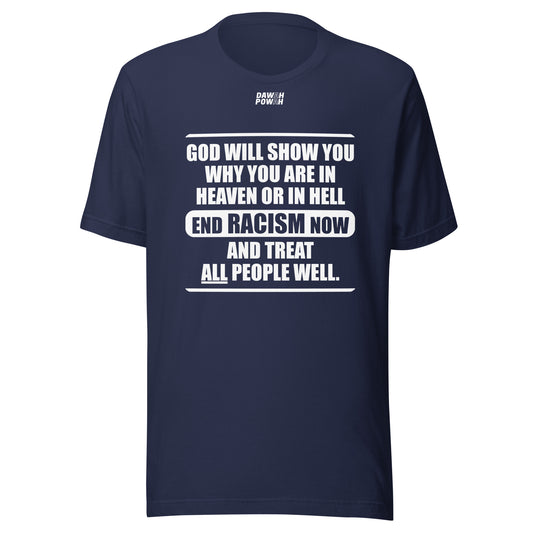 As evil and vile as racism is and all the harsh realities people still suffer under its label, it is long overdue that the same harsh reality of its consequences with God should be shared with those who practice this evil to allow them to reflect and hopefully reform, Insha Allah, which is enjoining good by forbidding evil.