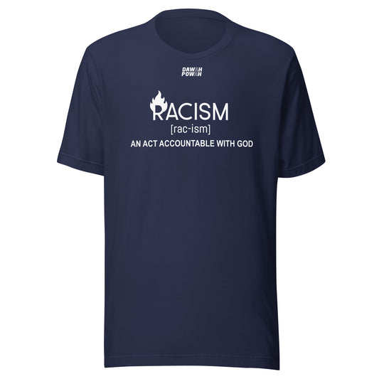 RACISM - AN ACT ACCOUNTABLE WITH GOD - WHITE FONT t-shirts