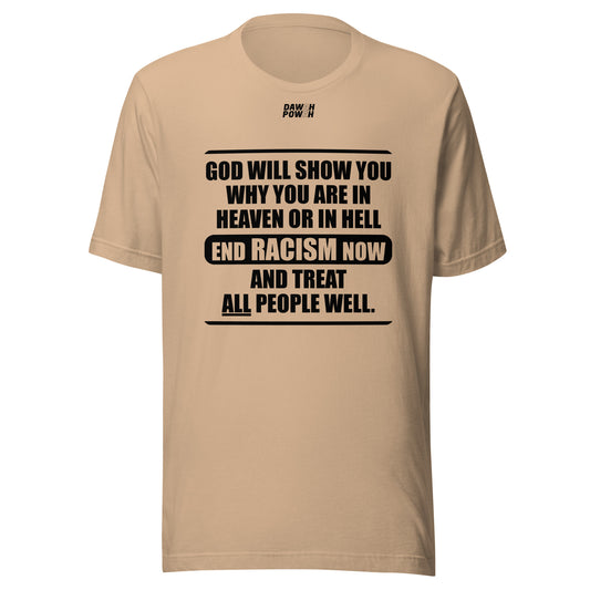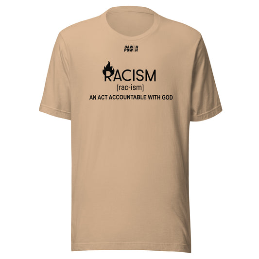 RACISM - AN ACT ACCOUNTABLE WITH GOD - BLACK FONT t-shirts
