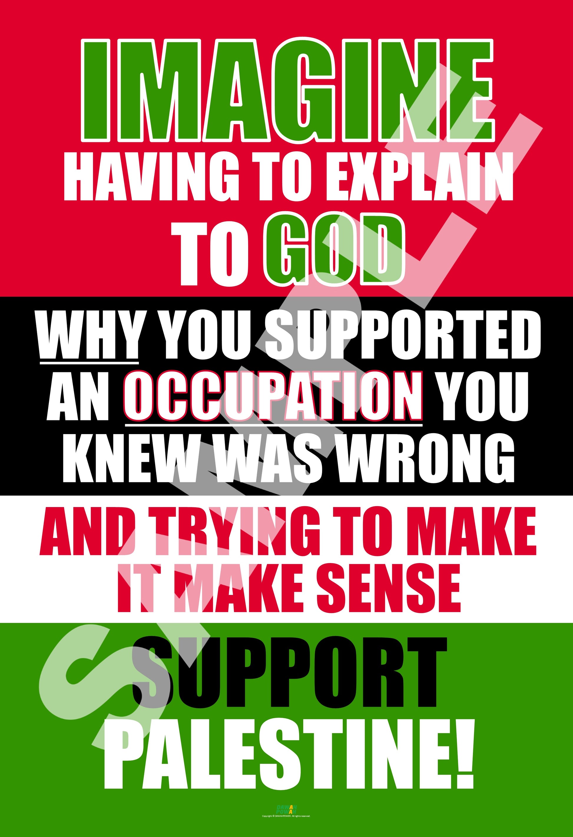 Share with 'politicians' a greater reason for whatever keeps them from passing laws of equality and justice regarding what they absolutely know to be an injustice against Palestine that they will have to explain to God why they supported it. See the T-shirt version of this statement.