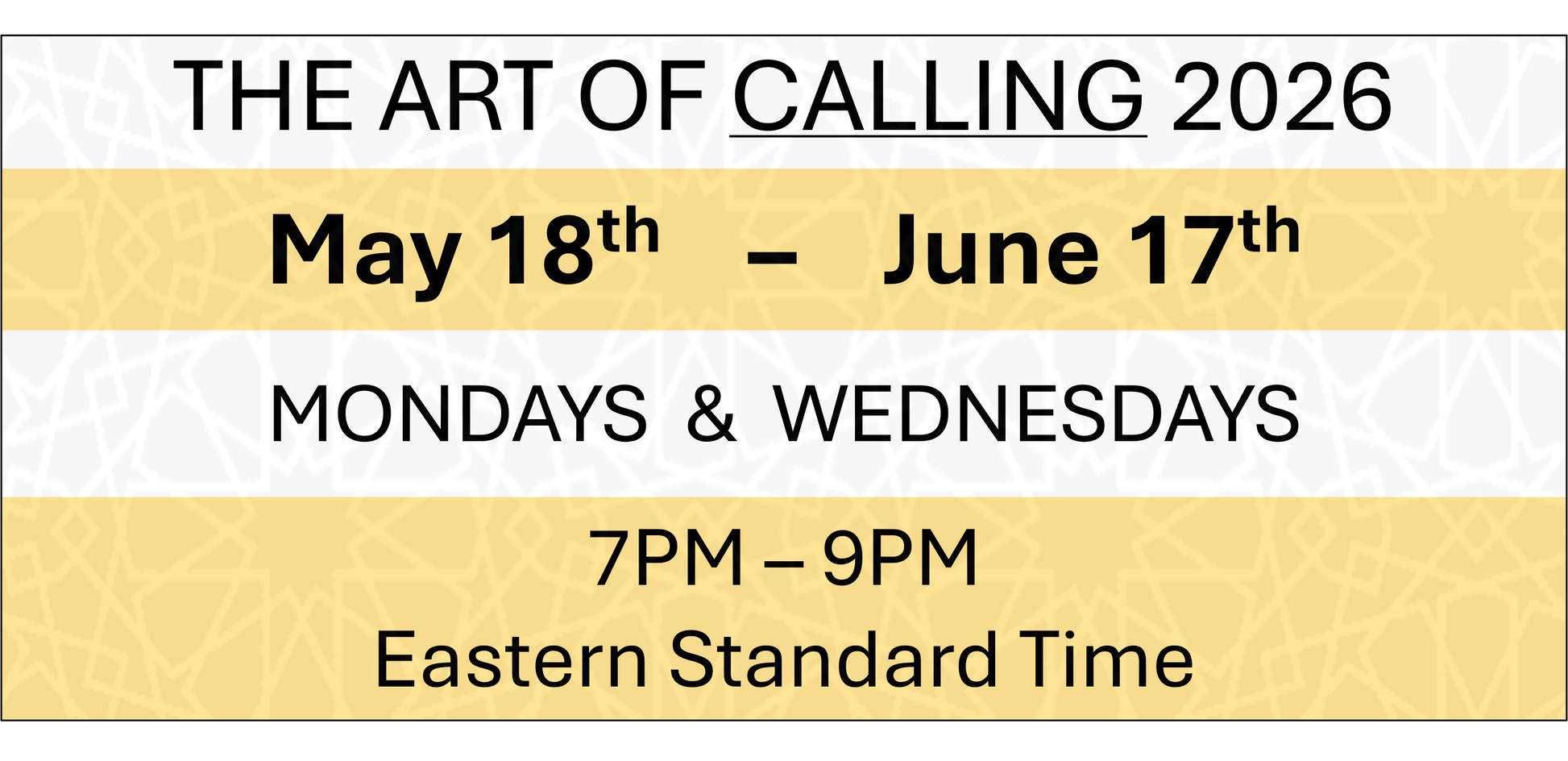 THE ART OF CALLING - May 18th - June 17th 2026