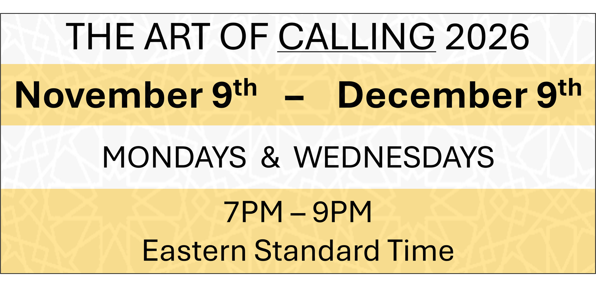 THE ART OF CALLING - November 9th - December 9th 2026