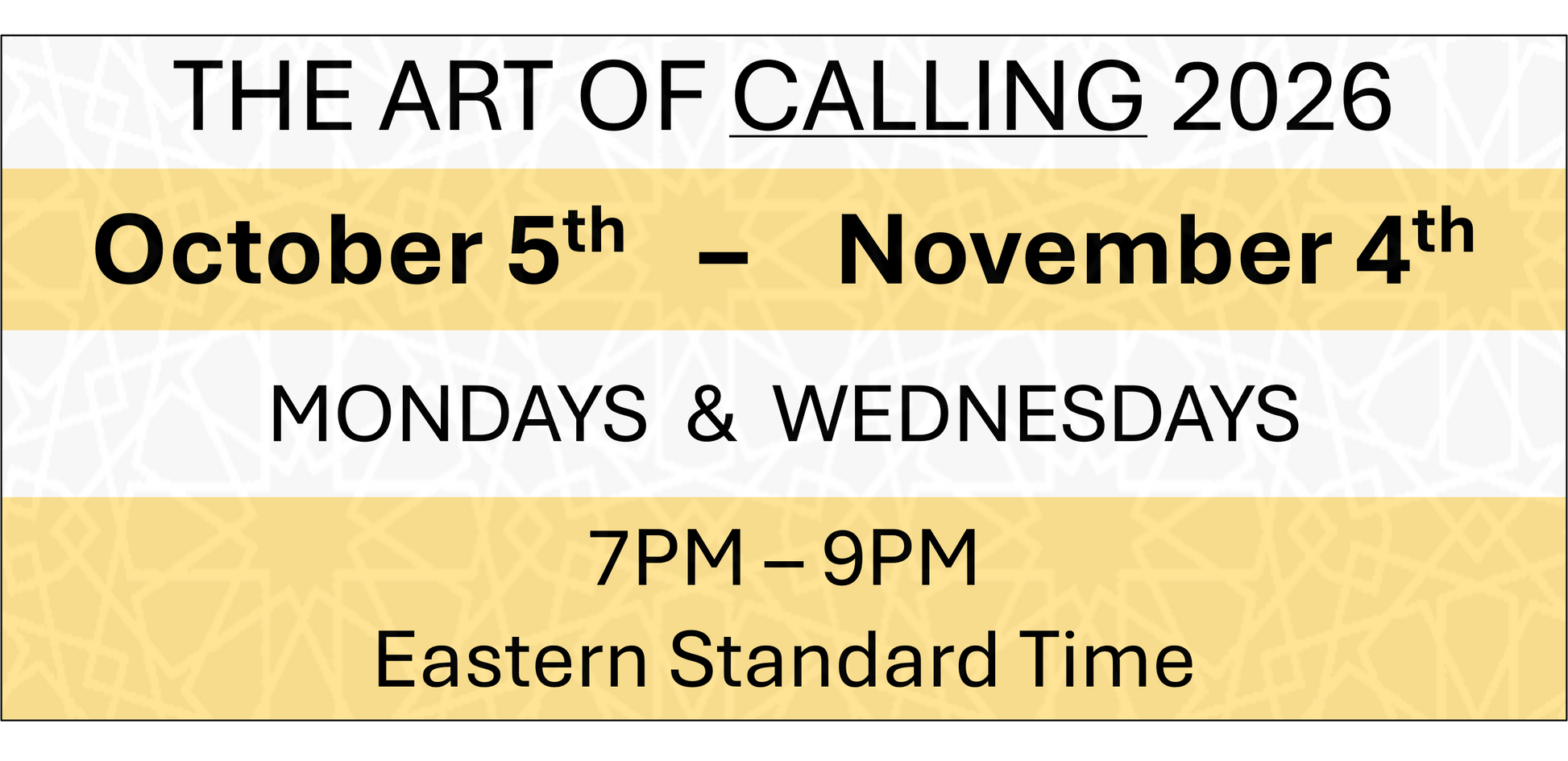 THE ART OF CALLING - October 5th - November 4th 2026