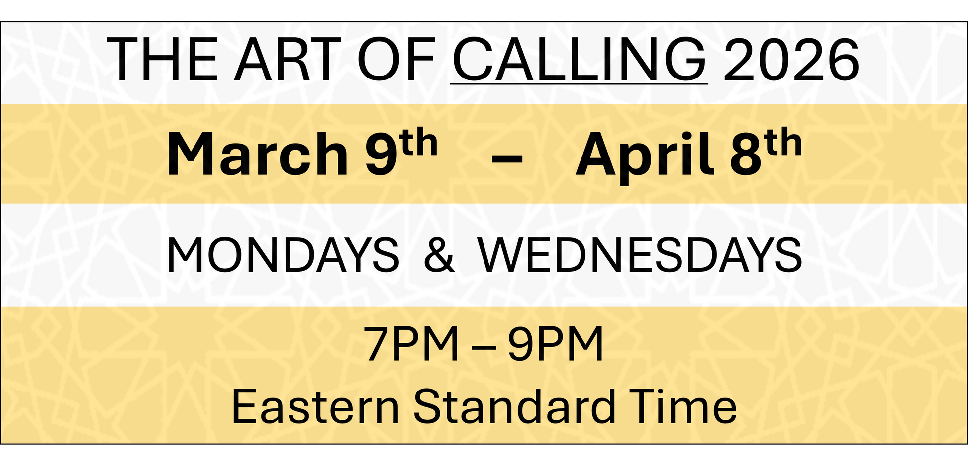 THE ART OF CALLING - March 9TH - April 8TH 2026