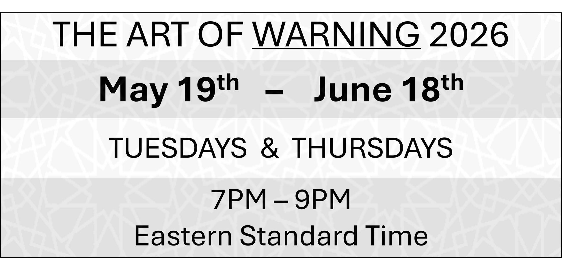 THE ART OF WARNING - May 19th - June 18th 2026