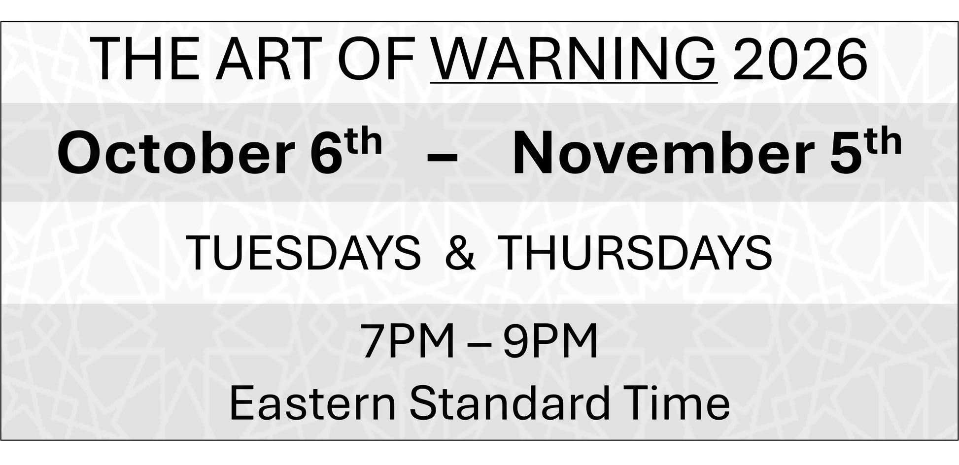 THE ART OF WARNING - October 6th - November 5th 2026